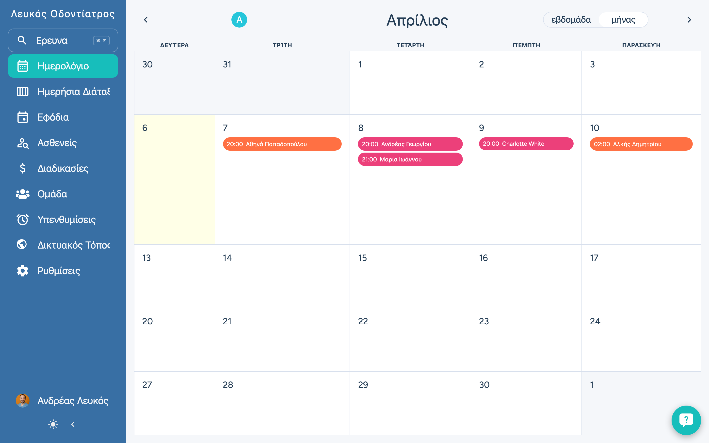 Προγραμματίστε ραντεβού, καταγράψτε θεραπείες, κρατήστε κλινικές σημειώσεις και διαχειριστείτε την χρέωση από έναν ενιαίο πίνακα ελέγχου. Η ροή εργασίας μας έχει σχεδιαστεί από οδοντιάτρους για μέγιστη αποτελεσματικότητα.