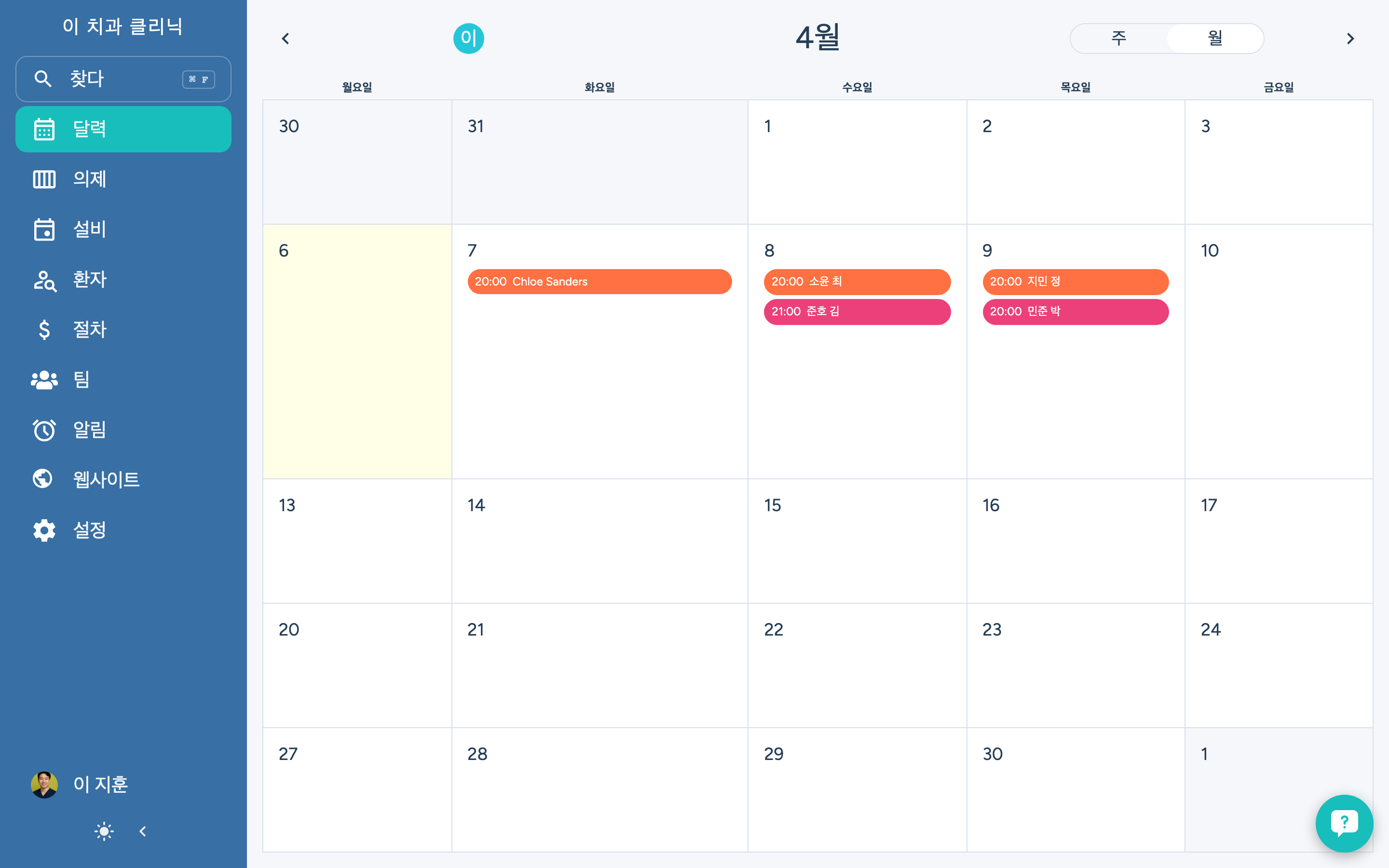 단일 대시보드에서 진료 예약, 치료 기록, 진료 기록 작성, 청구 관리까지 모두 가능합니다. 저희의 진료 과정은 치과 전문의들이 최대한의 효율성을 위해 설계했습니다.