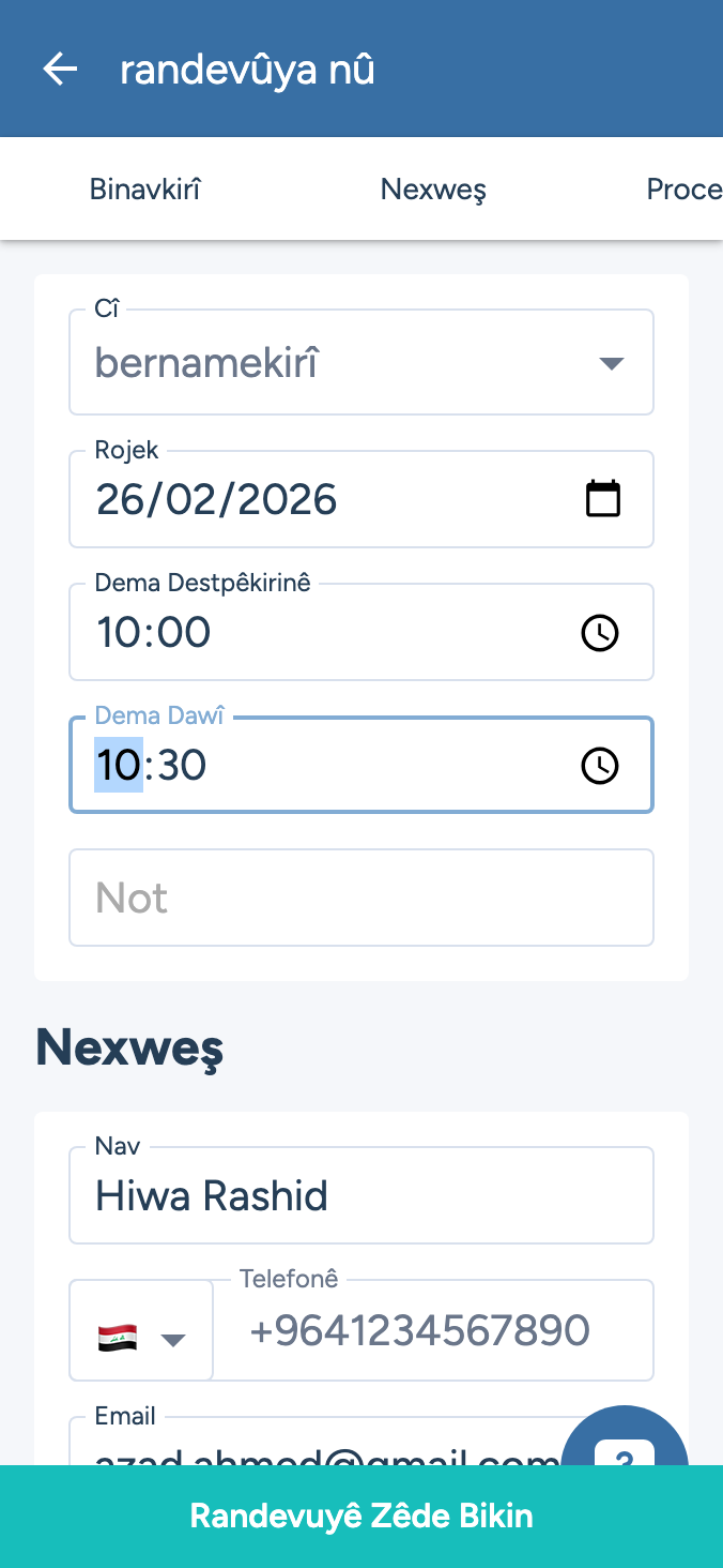 Bi bibîrxistinên SMS û e-nameyên otomatîkî, neçûnan kêm bikin. Pergala me ya plansazkirinê ya jîr dema kursiyê çêtir dike û rê li ber rezervasyonên ducar digire di heman demê de dihêle ku nexweş serhêl rezervasyonê bikin.