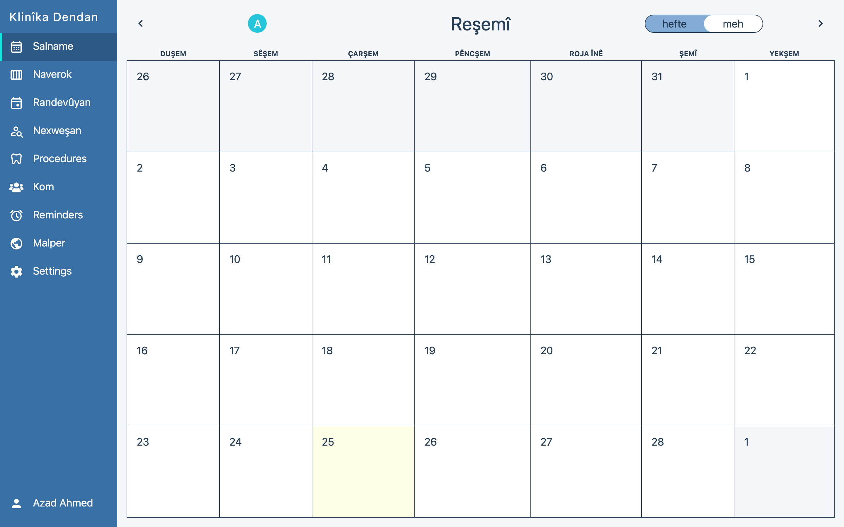 Randevûyan plansaz bikin, dermanan tomar bikin, notên klînîkî bigirin, û fatûreyan ji yek panelê birêve bibin. Karê me ji hêla diranan ve ji bo karîgeriya herî zêde hatiye sêwirandin.
