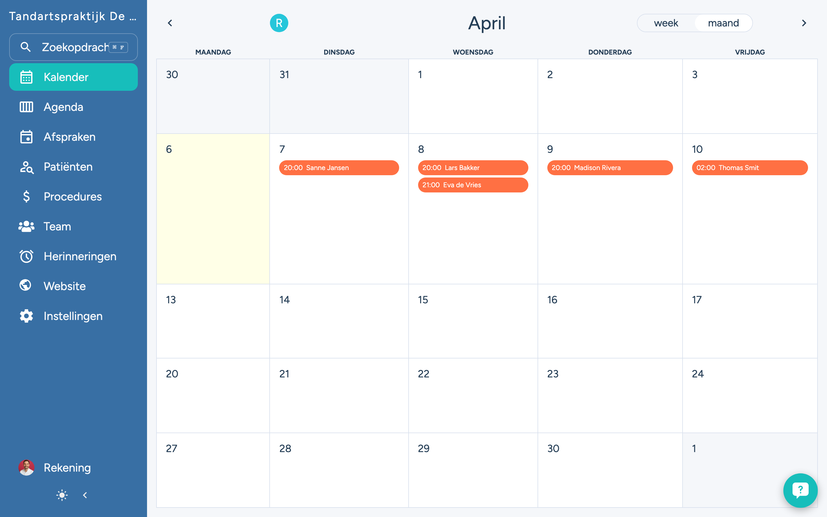 Maak binnen enkele minuten uw kliniekprofiel aan. Voeg uw tandartsen, medewerkers, behandelkamers en diensten toe. Importeer bestaande patiëntgegevens of begin helemaal opnieuw met onze intuïtieve installatiewizard.