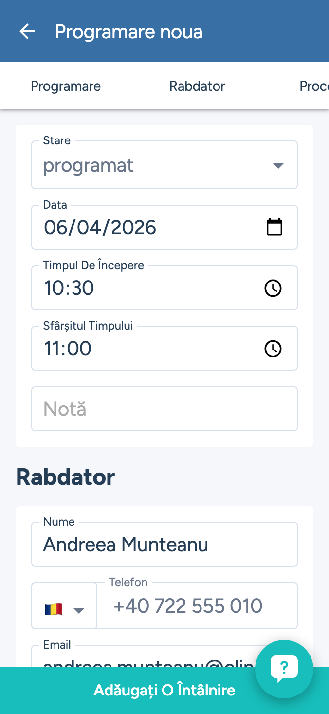 Urmați acești pași pentru a adăuga o programare: