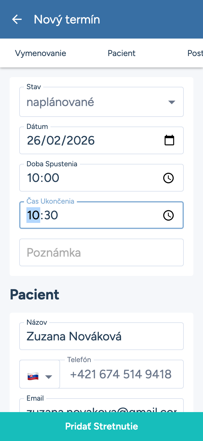 “Automatické pripomenutia termínov znižujú mieru nedostavenia sa až o 75 %, čím maximalizujú príjmy vašej ambulancie a využitie kresla.”