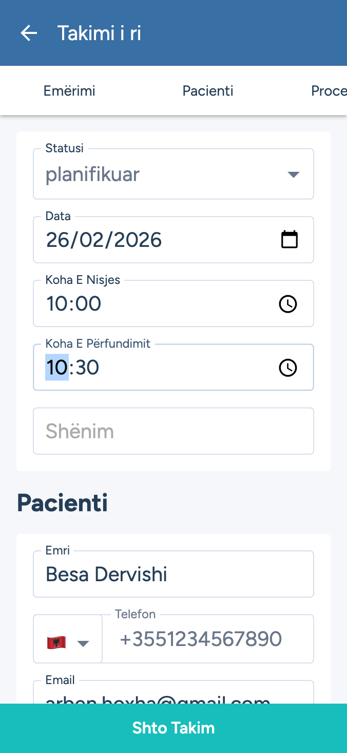 Caktoni takime, regjistroni trajtimet, mbani shënime klinike dhe menaxhoni faturimin nga një panel i vetëm. Fluksi ynë i punës është projektuar nga dentistët për efikasitet maksimal.